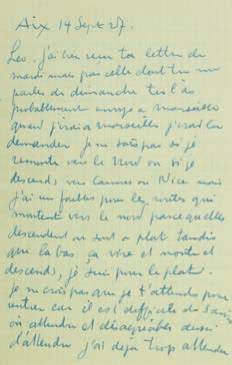 moins que tu ne sois repartie à Biarritz ou ailleurs – car je n’ai pas eu la moindre nouvelle de toi depuis Marseille. […] les jours