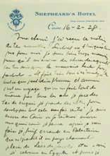 chasses mouches mais le pays est magnifique. J’ai fait des tas de croquis et je pense les développer au Caire ». Il donne des conseils