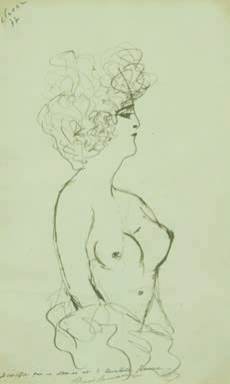 Femme aux seins nus. Le dessin est authentifié en