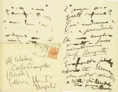 Naples ; 2 pages in-8, enveloppe ; en italien.