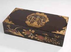 Boîte en laque noire du Japon de forme rectangulaire.