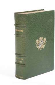 premier plat, dos à nerfs, large carde de maroquin vert à l’intérieur, orné de 3