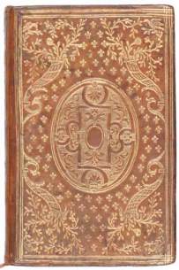 — In-8, (9 ff. septième blanc), 150 ff. chiffrés 157. Veau fauve, plats ornés d’un riche décor doré composé d’un