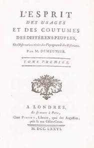 de comparer les mœurs, les usages, les coutumes et les lois des différentes nations. L’ouvrage est divisé en 18 parties passant en