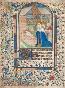 Belle page de livre d’heures enluminée avec rehauts d’or,