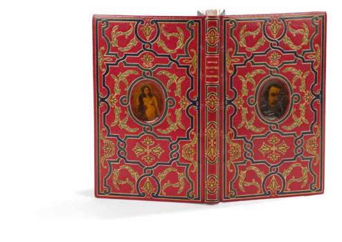 Certainement l’un des plus beaux exemplaires connus de cette édition. Le relieur a incrusté au centre des plats deux portraits