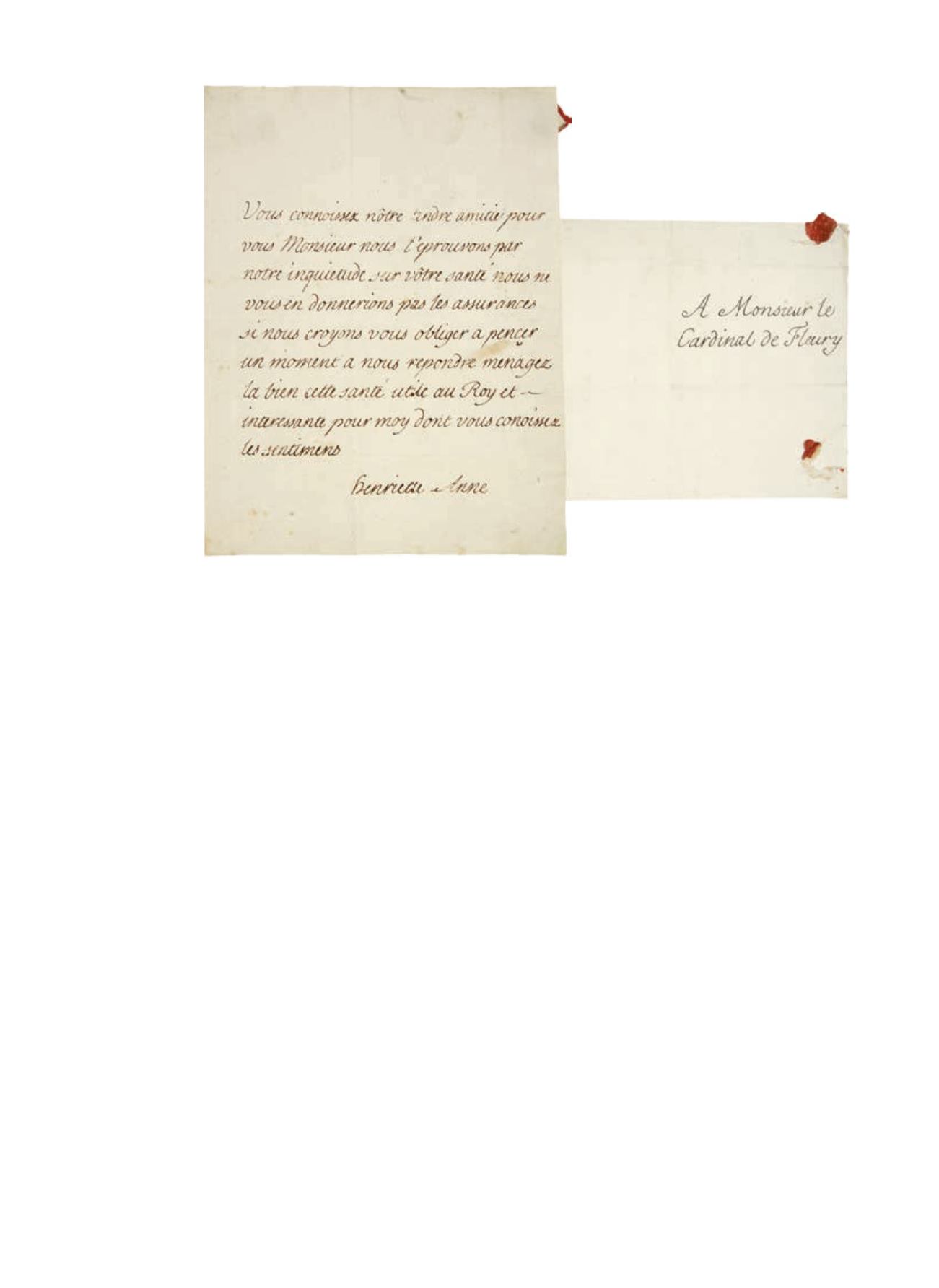 3 lettres autographes signées « Henriette Anne », [vers 1738-1739], au cardinal de F