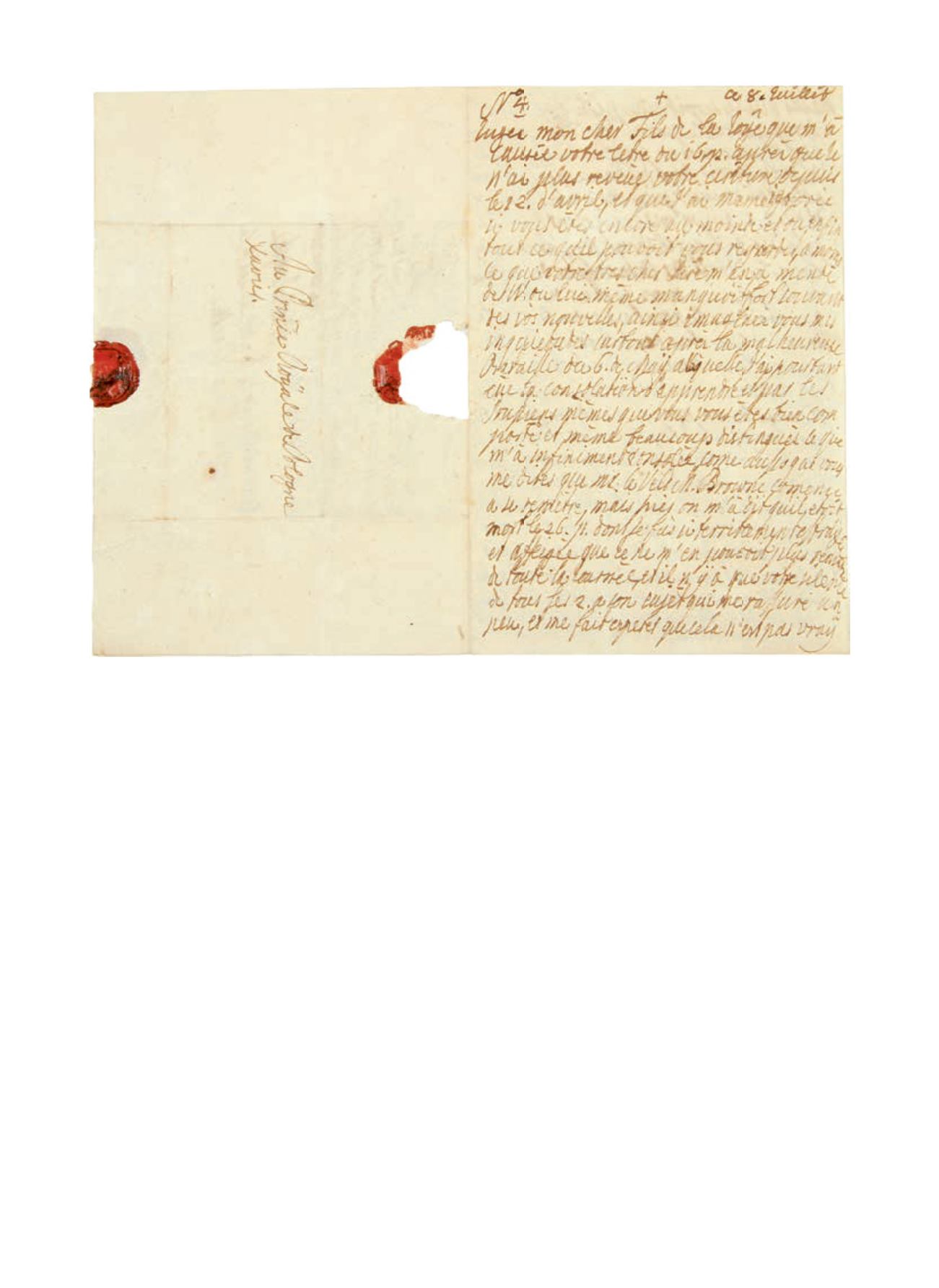 demie in-12, adresse avec cachet de cire rouge (brisé, petite déchirure par bris de cachet).