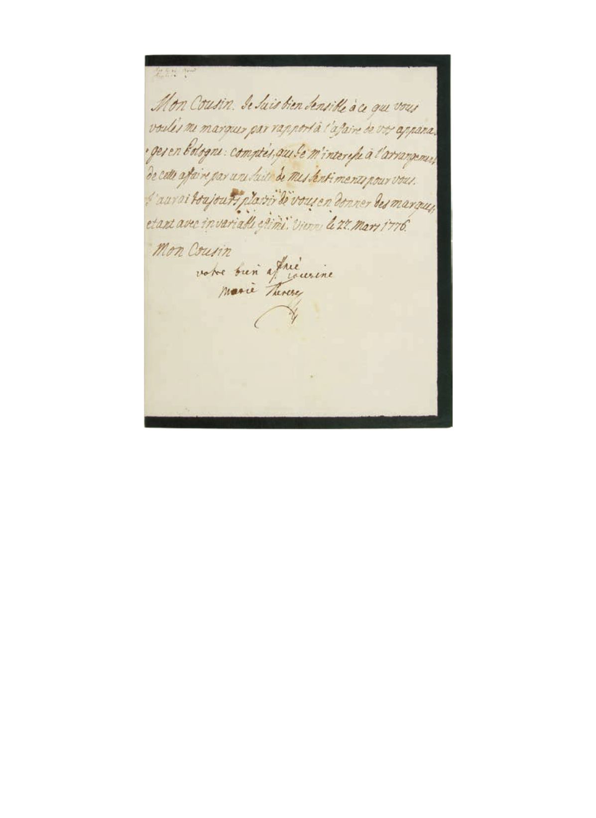 cousine Marie Therese », Vienne 22 mars 1776, à son
