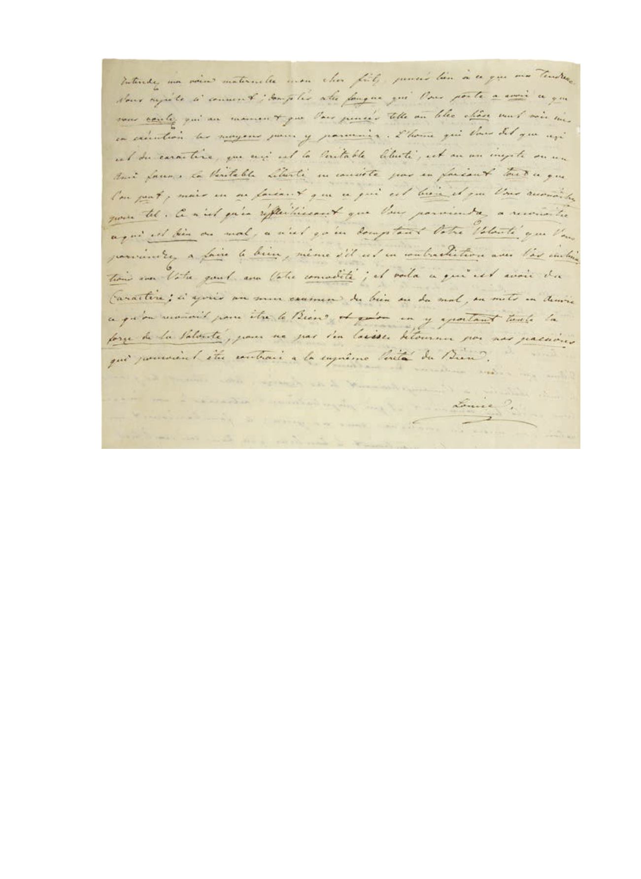 destinées sont pareilles aux votres. J’ai souligné les devoirs les plus sacrés de chaque homme. La force de reprimer vos desirs, de