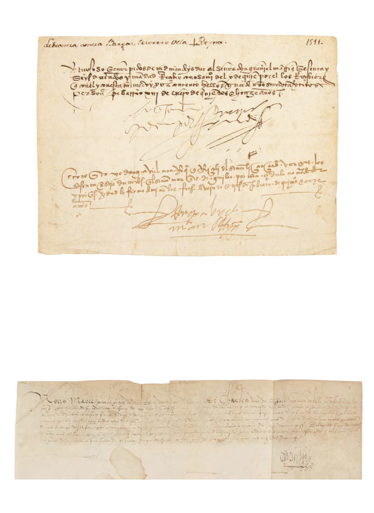 , « Par la Royne douairiere et Monseigneur le duc » ; vélin oblong in-fol. (mouillure