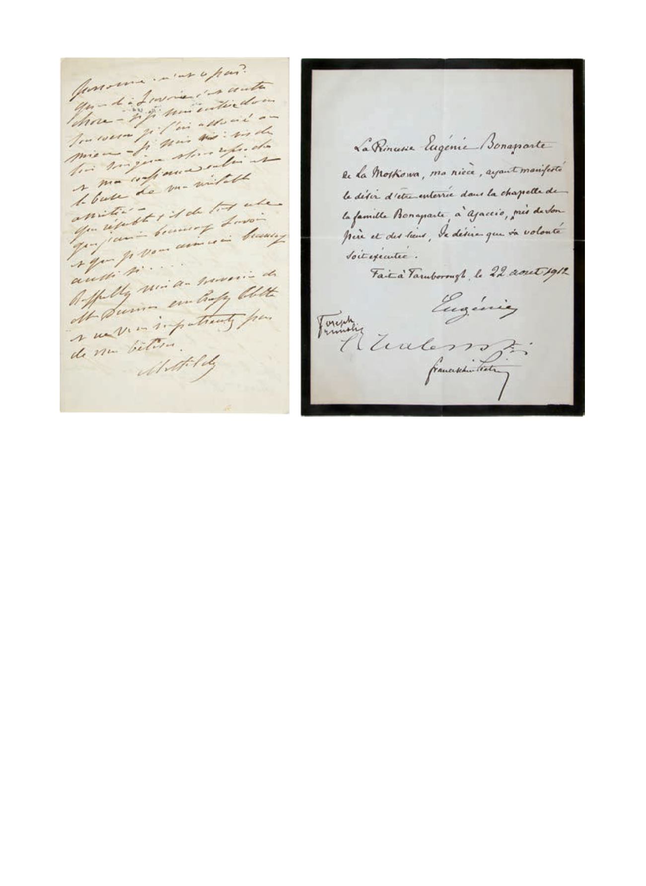 Bonaparte, à Ajaccio, près de son père et des siens, je désire que sa volonté soit exécutée »... Sous la signature de l’Impératrice,