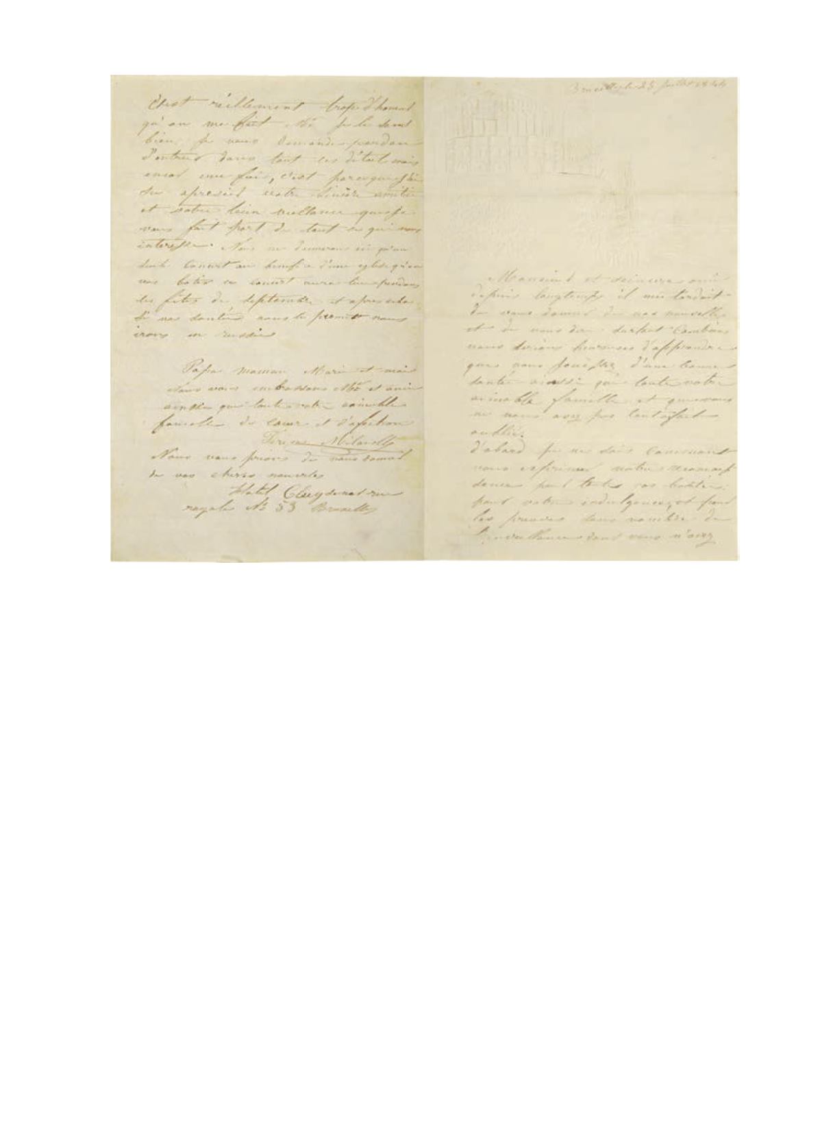 je lui ai parlé à chaque station et l’ai engagé à venir me voir ; il à déjeuné et dîné hier avec moi, plus même il a écrit à sa femme de