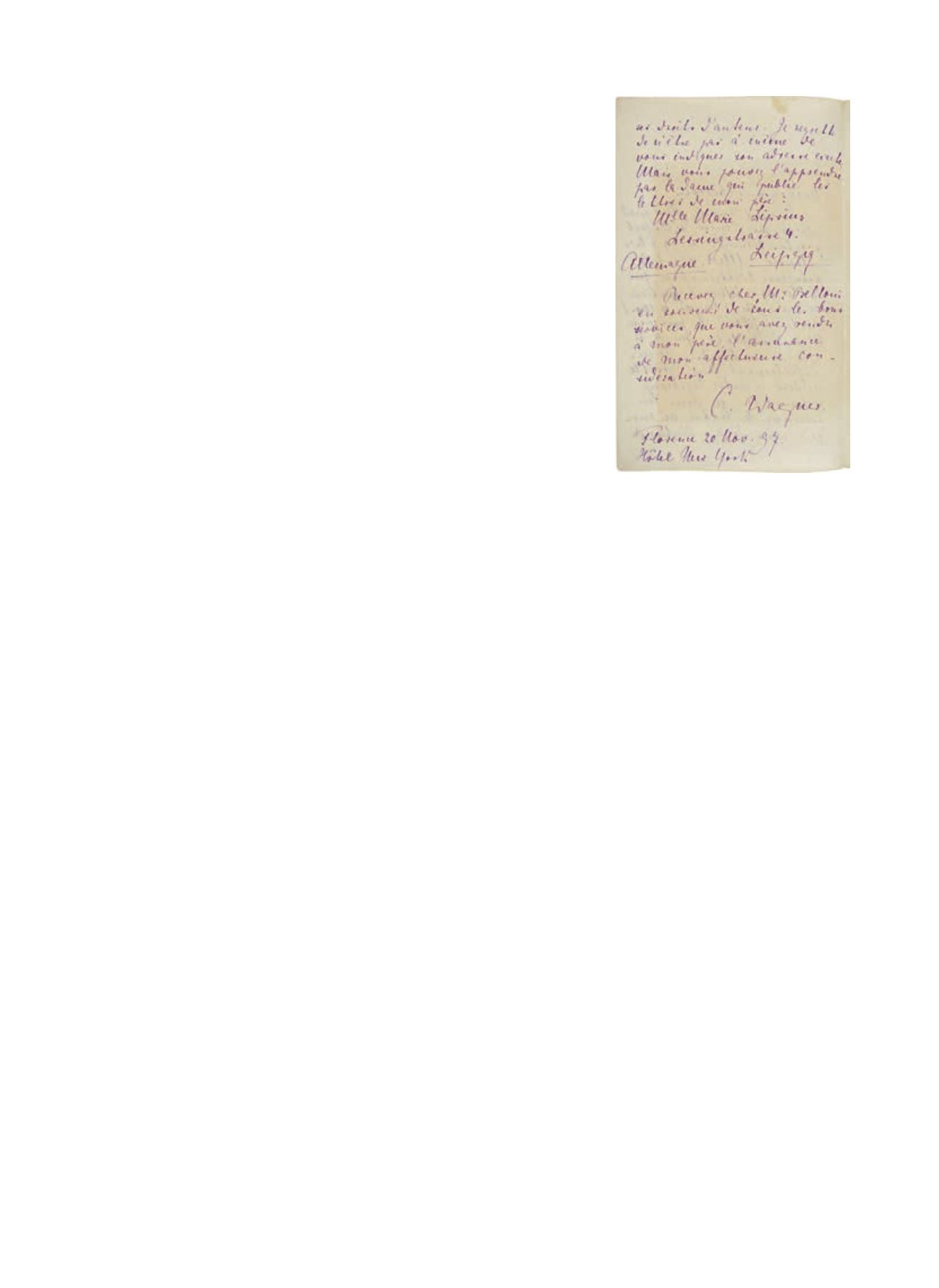 Lettre autographe signée « C. Wagner », Florence 20 novembre 1897, à