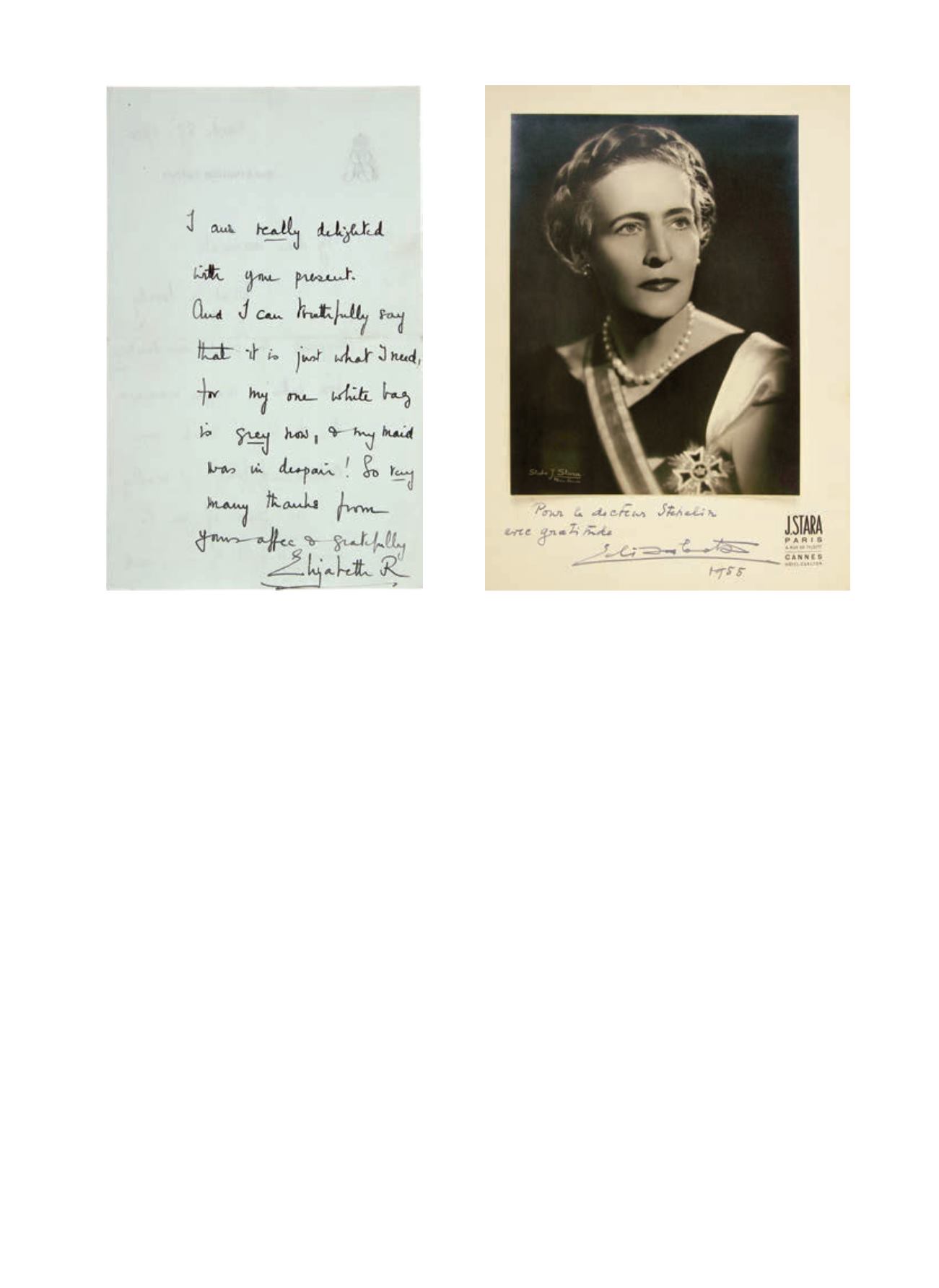 Beau portrait par le Studio Stara, dédicacé : « Pour le docteur Stehelin avec gratitude. Elisabeta.1955. »
