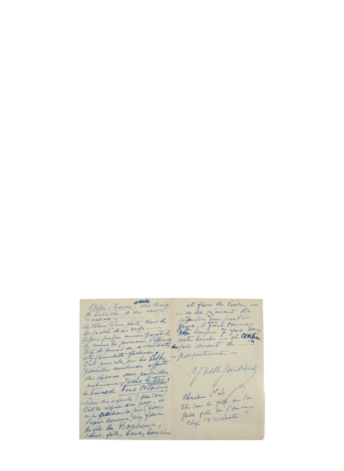 autographe, signé en tête « Eve Lavallière », Thuillières (Vosges) 1920-1921 ; cahier de 53 pages in-4