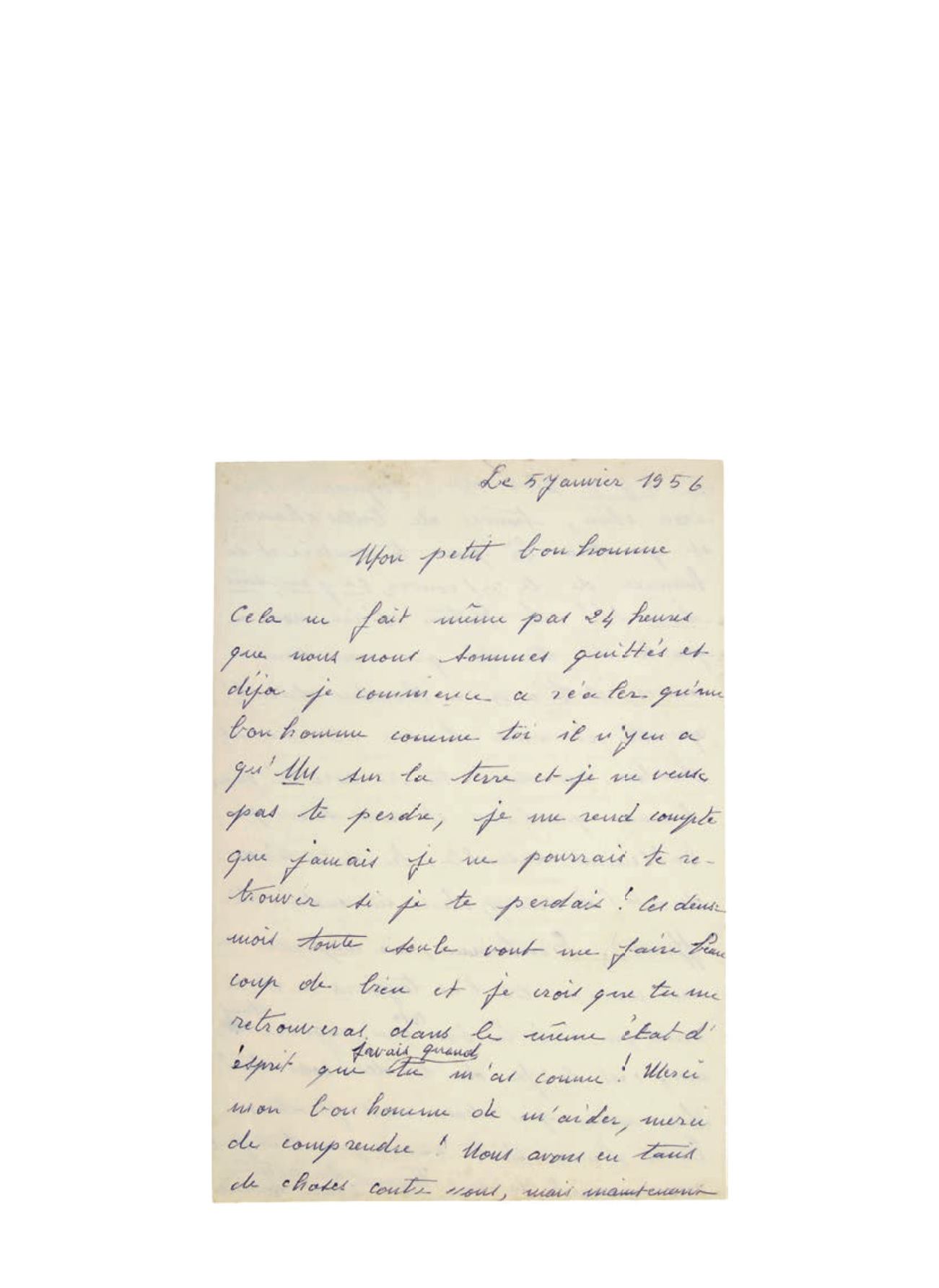 Lettre autographe signée « ta petite bonne femme », 5 janvier 1956, [à Jacques P