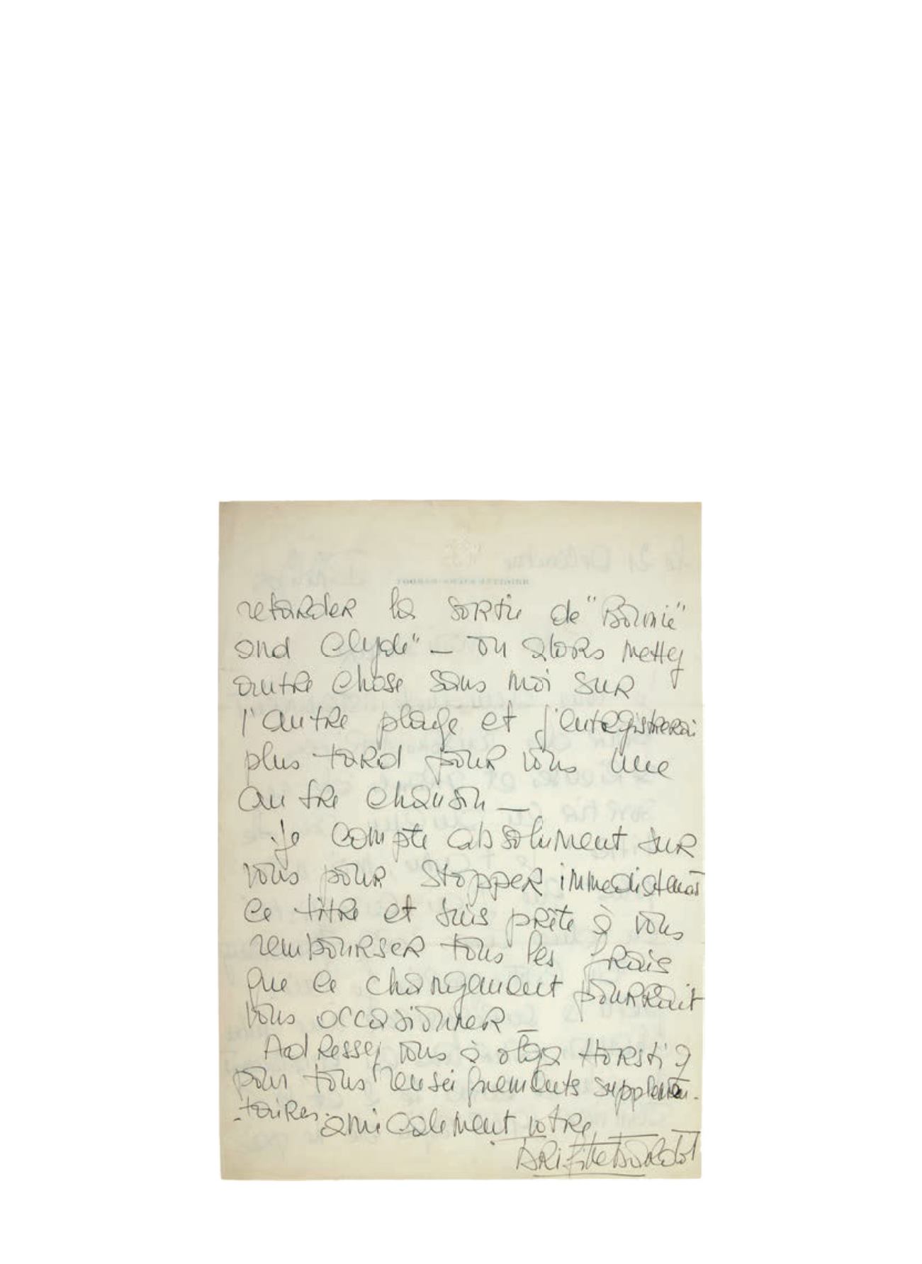 Lettre autographe signée « Brigitte Bardot », 21 décembre [1967], à un directeur artistique de P