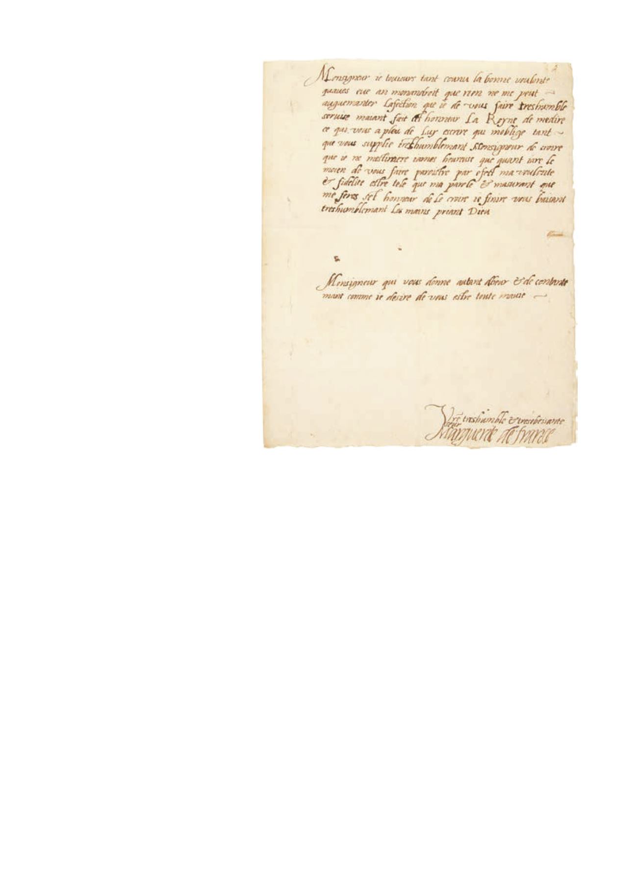 comtesse de Guise, et termine en lui souhaitant « la joye de vostre gros ventre que vous en desyre » et en se recommandant d’elle