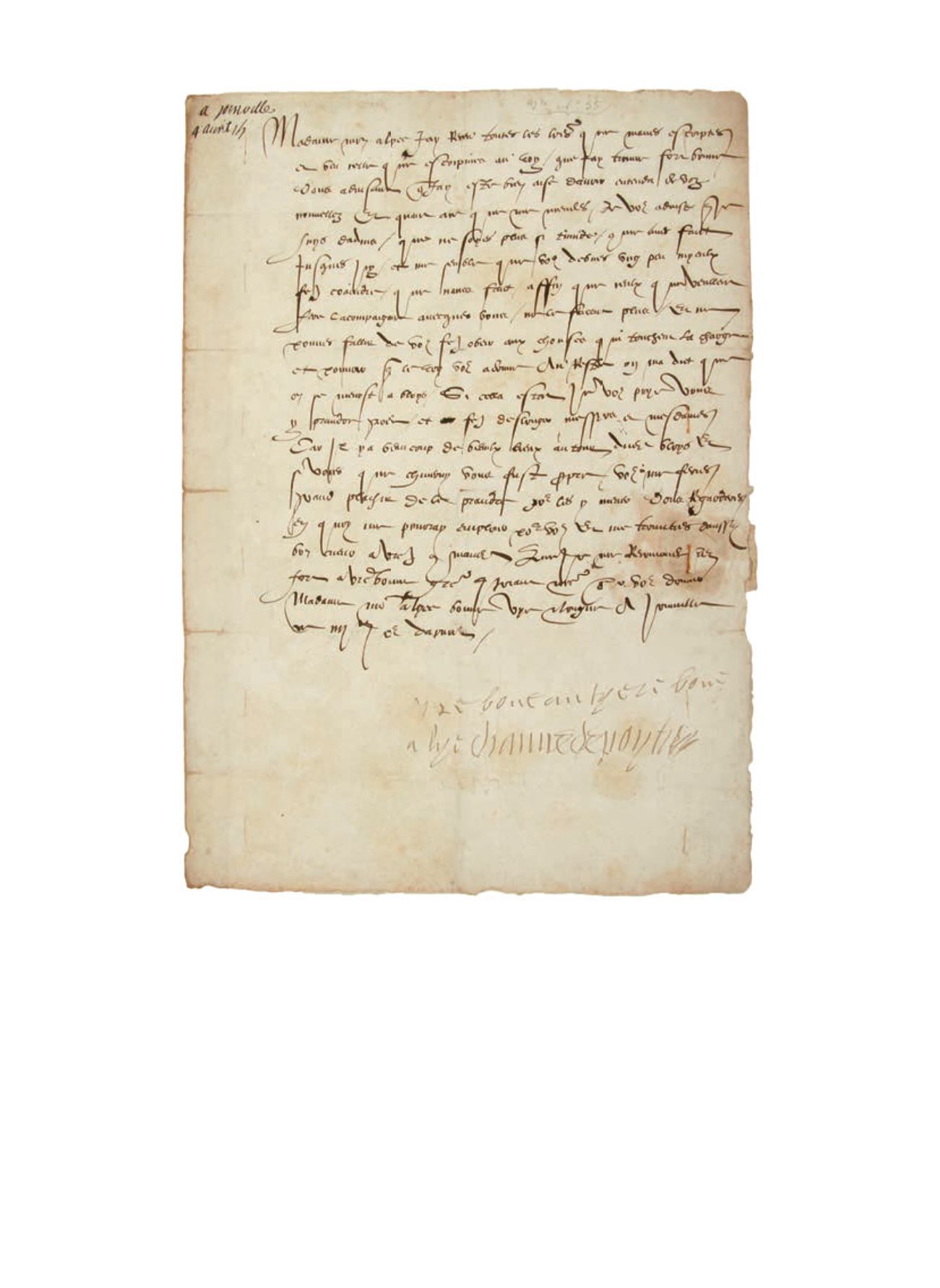 pourray emploier pour vous »... De sa main, elle signe : « Votre bone amye et bone alyee, Dianne de Poitiers ».