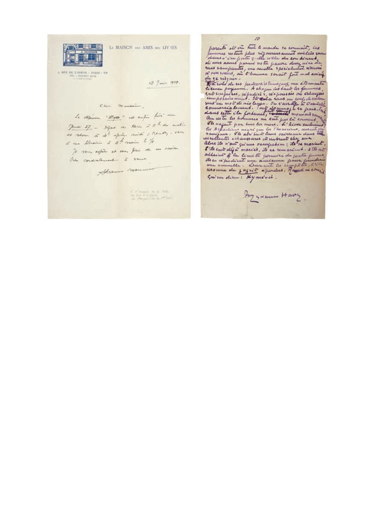 Lettre autographe signée « Adrienne Monnier »,