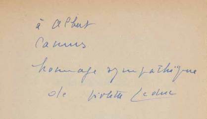 Cette provenance est d’autant plus précieuse que c’est Camus qui publia le premier ouvrage de Violette Leduc, à savoir