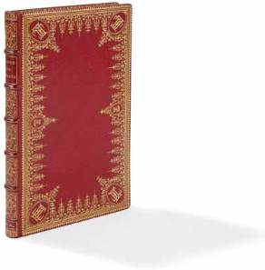Maroquin rouge, plats ornés d’un encadrement composé d’une large dentelle