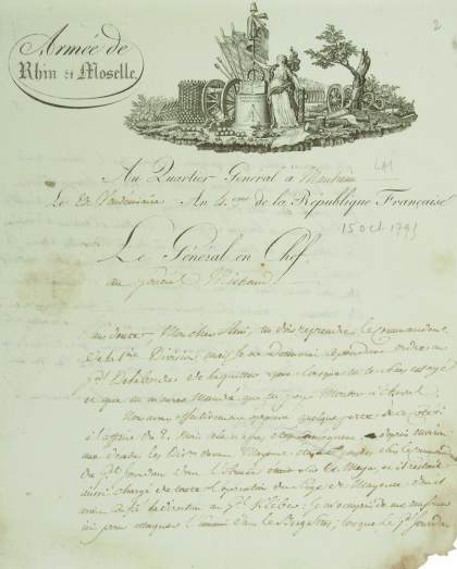 (1761-1804) général. L.A.S., Q.G. de Mannheim 23 vendémiaire IV [15 octobre 1795], au