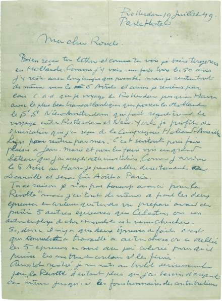 (1877-1968). L.A.S., Rotterdam 19 juillet 1949, au Dr Alexandre R