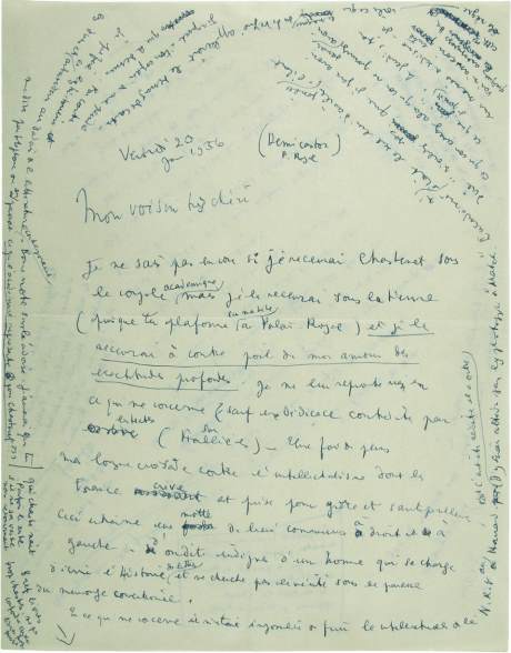 . L.A.S. « Jean », Palais-Royal 20 janvier 1956, à « son voisin très chéri » Emmanuel B