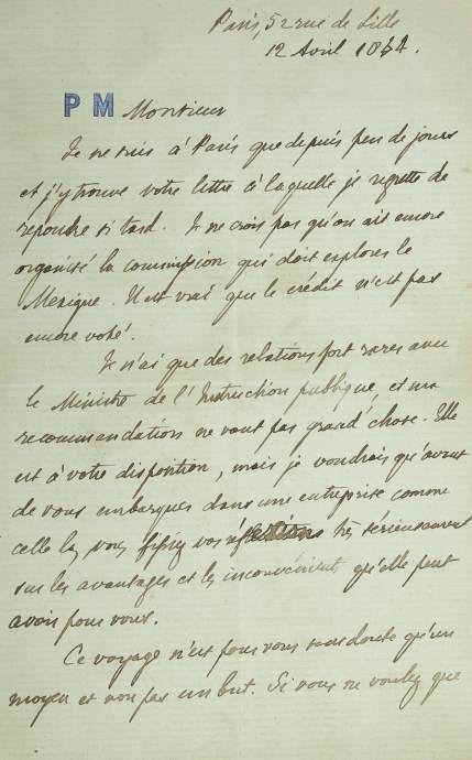 Mérimée ne croit pas qu’on ait encore organisé la commission qui doit explorer le Mexique, le crédit n’est pas encore voté,