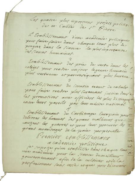 corrections et additions autographes de l’abbé de Saint-Pierre ; l’autre, d’une écriture soignée, est une mise au net de l’état