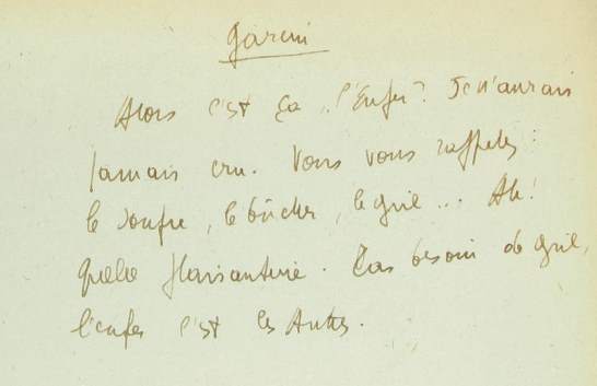 Estelle assiste à son enterrement en le commentant (p. 33-35 avec corrections, p. 34 d’une autre main), puis Inès voit