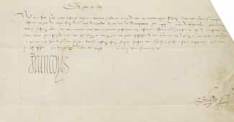 Pamiers, De Loménie », Paris 2 septembre 1613, manuscrit en français sur vélin, une page in-folio oblong, au Sénéchal