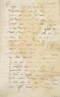 comportant 34 lettres de 1561 à 1602, dont 17 lettres autographes signées, 16 lettres signées avec en général le compliment