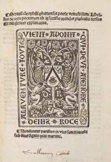 Josse Bade, imprimée en lettres gothiques par Antoine Bonnemère pour Denis Roce. Elle comporte la préface de Josse Bade