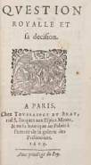[DUVERGIER DE HAURANNE (Jean)]. Question royalle et sa décision.