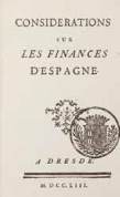 [FORBONNAIS (François Véron Duverger de)]. Considérations sur les finances d’Espagne.