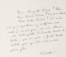 Exemplaire enrichi d’une lettre autographe signée de Colette sur papier dentelle rose, adressée à Aldine Berès, lui souhaitant