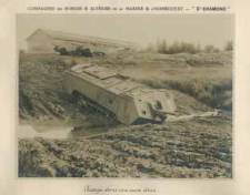 . Char d’assault « St Chamond », 1916. Chenille Delahaye. Matériel d’artillerie (canons, obus,