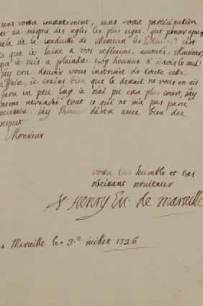 . L.A.S. « Henry Ev. de Marseille », Marseille 3 juillet 1726 ; 10 pages petit in-fol. 700/800