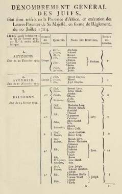 Dénombrement général des Juifs, Qui sont tolérés en la Province d’Alsace, en exécution des lettres-patentes