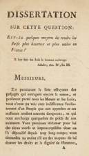Dissertation sur cette question ; Est-il un moyen de rendre les Juifs plus heureux et plus utiles en France,