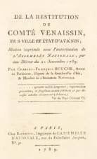 De la restitution du Comtat Venaissin, des ville et Etat d’Avignon ; motion imprimée