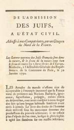 De l’admission des Juifs à l’état-civil. Adresse à mes Compatriotes, par un Citoyen