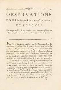Observations pour le citoyen Lipman-Cerfberr, en réponse au rapport fait le 15 janvier,