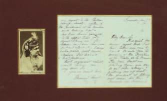 1878 ; 4 pages in-8 ; en anglais (encadrée, avec photo format carte de visite).