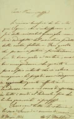 (1808-1836) cantatrice. L.A.S., 10 mai 1834, à une princesse ; 1 page in-8 collée sur carte ; en