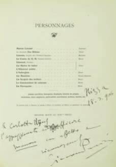 Opera : « alla distintissima artiste (delisioza Musette) Signoria Belle Alten ricordo di Giacomo Puccini New York 1910 ».