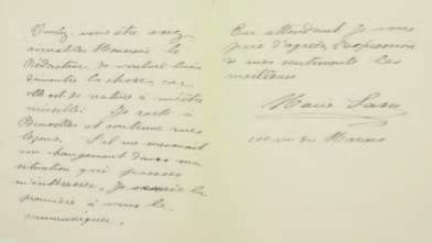 tenue de ville, un signet à son effigie, ainsi qu’un dessin en couleurs